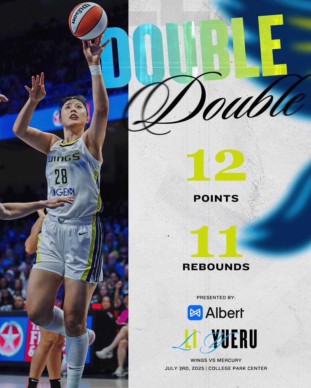 连续第4场首发的李月汝,本场比赛虽然5投仅1中,但依靠拼抢获得12次罚球机会,最终罚进10球,全场拿到12分11篮板,达成生涯第3次两双。