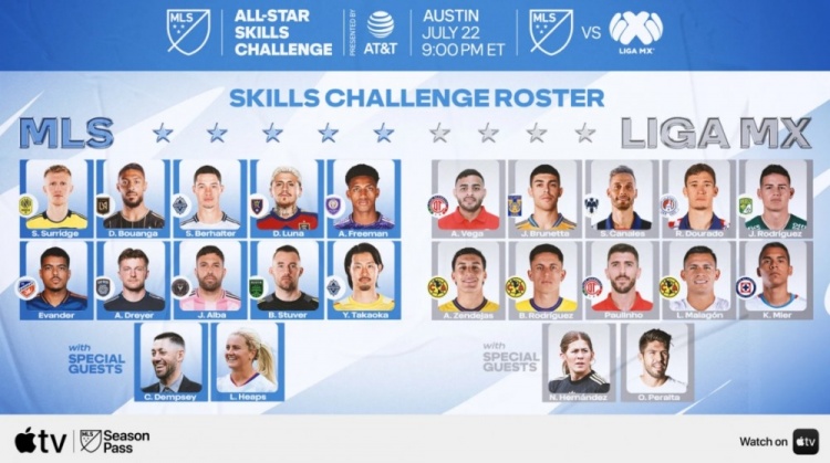美职联官方表示,全明星技巧挑战赛比赛包括五项基于足球运动的对抗赛,每项比赛都考验控球、精准度、策略和团队合作。